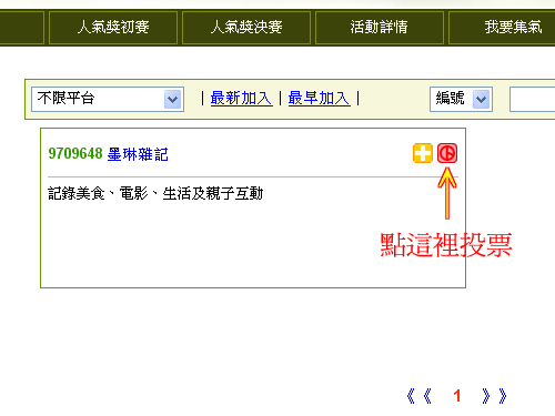 - 初賽(9/16 AM12:00 - 10/14 PM11:59):期間每位會員最多可投20票,同一位部落客限投一票。